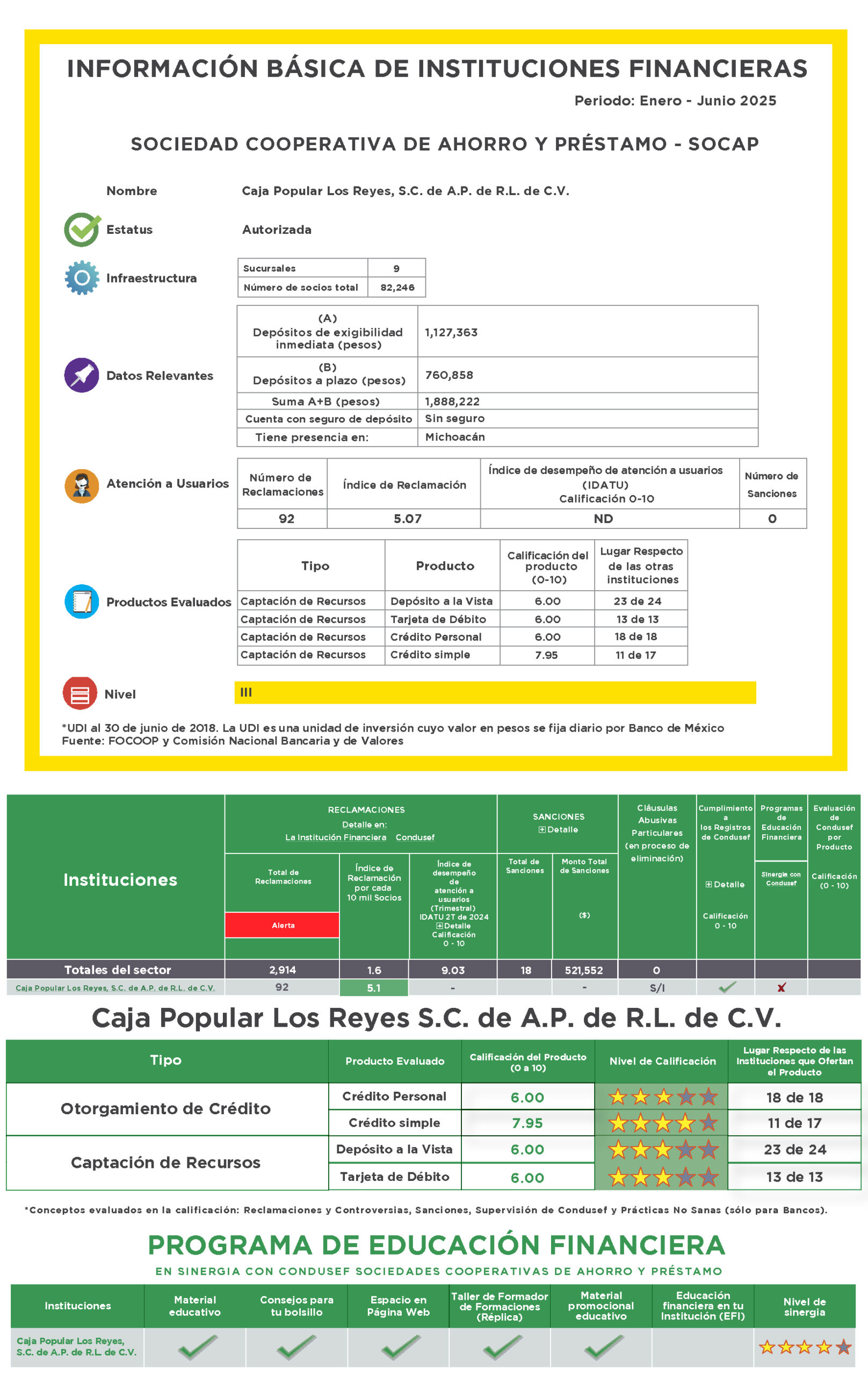 Es una herramienta de consulta y difusión con la que podrás conocer los productos que ofrecen las entidades financieras, sus comisiones y tasas, las reclamaciones de los usuarios, las prácticas no sanas en que incurren, las sanciones administrativas que les han impuesto, las cláusulas abusivas de sus contratos y otra información que resulte relevante para informarte sobre su desempeño.